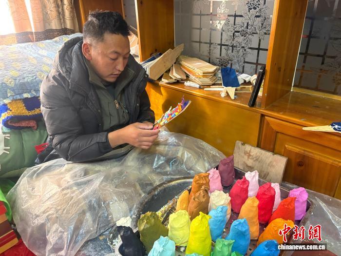 中新網(wǎng)拉薩2月5日電(多吉卓瑪 旦增尼瑪)春節(jié)、藏歷新年將至,西藏自治區(qū)拉薩市大街小巷年貨豐富,節(jié)日氛圍濃厚。在拉薩市區(qū),來自日喀則市仁布縣普松鄉(xiāng)的非物質(zhì)文化遺產(chǎn)代表性傳承人羅布,正帶著徒弟們,用古老的技藝,為高原佳節(jié)增添一抹獨特的非遺韻味。