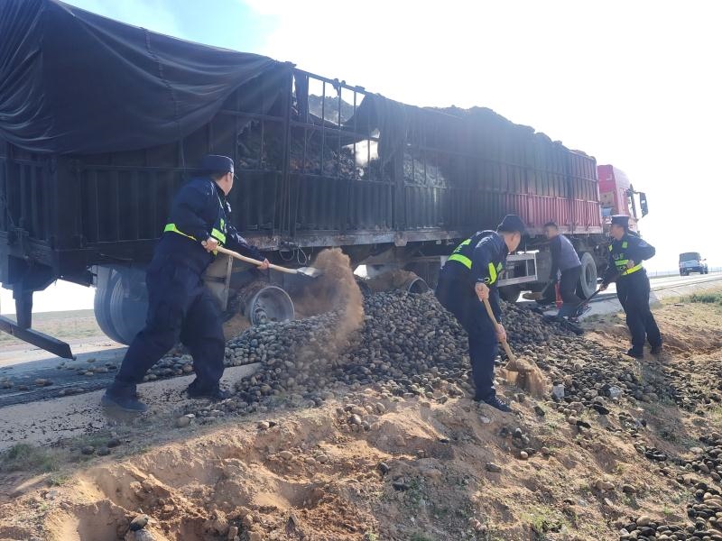 “叮鈴鈴、叮鈴鈴......”9月16日上午9時(shí)許,一聲清脆的警鈴讓阿拉善邊境管理支隊(duì)烏力吉邊境派出所的民警們的心為之一驚,有群眾報(bào)警稱(chēng)在轄區(qū)S218省道上,一輛滿載土豆的重型半掛牽引車(chē)起火自燃了。