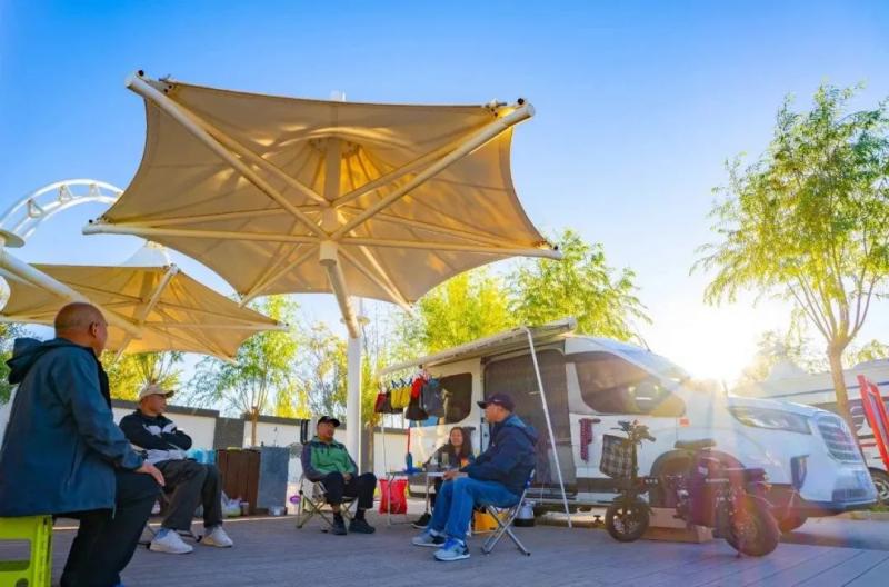 在額濟(jì)納旗居延驛站,不少自駕游旅客搭起帳篷、支起飯桌,三五好友圍坐在一起,盡情探索“露營(yíng)+”新玩法。旅游旺季期間,居延驛站全力保障車(chē)位供給,配備完善的水電系統(tǒng),著力提升游客體驗(yàn)感。“這里不僅風(fēng)光獨(dú)特,而且旅游設(shè)施完善、服務(wù)周到,真是不虛此行。”來(lái)自上海的“摩旅發(fā)燒友”云楓連連稱(chēng)贊。