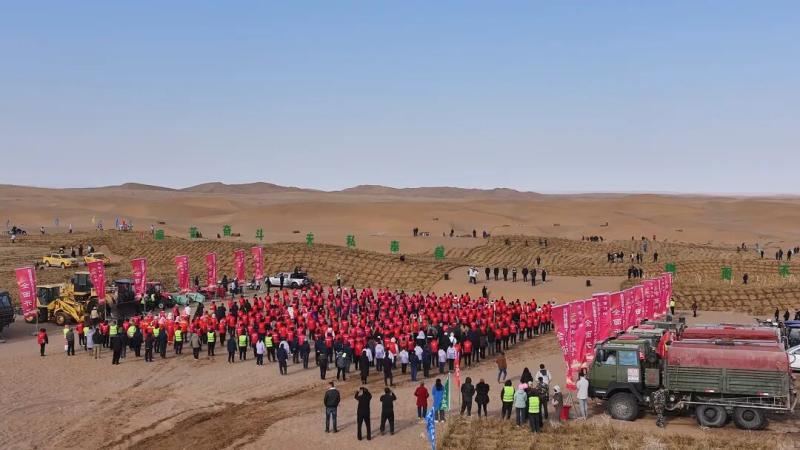 每年春秋兩季,阿拉善盟都會掀起萬人治沙大會戰(zhàn),機(jī)關(guān)干部、部隊官兵、企業(yè)員工、學(xué)校師生紛紛走向沙漠,揮鍬植綠。45年來,全盟累計有數(shù)百萬人次參與義務(wù)治沙,社會力量投入資金超過6億元,形成了“政府引導(dǎo)、企業(yè)協(xié)同、農(nóng)牧民參與”的多元共治格局。