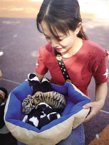 據(jù)發(fā)布信息的包頭市勞動(dòng)公園動(dòng)物園園長曾勇介紹,6月2日,動(dòng)物園里出生了一只雌性小虎崽,小虎崽出生后,虎媽媽因沒有帶娃經(jīng)驗(yàn),出現(xiàn)脾氣暴躁的情況,為防止小虎崽被傷害,只能先給它喂食羊奶。動(dòng)物園在高興之余借鑒了其他地區(qū)的應(yīng)急措施,由于狗和貓科動(dòng)物之間的奶源是互通的,可以實(shí)現(xiàn)相互喂養(yǎng),便發(fā)布消息,希望通過狗媽媽替代哺乳的方式幫助東北虎幼崽成長。為保證虎寶寶健康,動(dòng)物園決定為它尋找一只生產(chǎn)20天以內(nèi)的狗媽媽,喂養(yǎng)時(shí)間為20天左右,喂養(yǎng)期間,動(dòng)物園為它們準(zhǔn)備單間,小老虎和狗兄弟同吃同住。