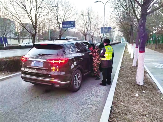 12月20日17時15分,九原區(qū)交管大隊第三警務區(qū)執(zhí)勤民警正駕駛警車在轄區(qū)巡邏清理違停車輛,當巡邏至緯四路與經二路交叉口時,他們發(fā)現(xiàn)一輛黑色越野車停在緯四路非機動車道內且打著雙閃?!翱吹杰嚧蛑p閃燈,想著可能是車上的人有啥困難,我們就把警車開到附近,看到一名年輕男子正在車周圍焦急地來回徘徊,神情特別緊張?!眻?zhí)勤民警說。