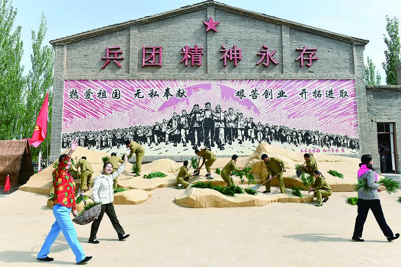 活動(dòng)在歡迎兵團(tuán)戰(zhàn)士的沉浸式演藝場(chǎng)景中開始?!按笥凶鳛椤鞭r(nóng)事體驗(yàn)、“苦中作樂”兵團(tuán)大鍋飯?bào)w驗(yàn)等,讓活動(dòng)參與者們“穿越”到兵團(tuán)歲月。歌手科爾沁夫演唱了本屆藝術(shù)季主題曲《來到了磴口你就不想走》,將現(xiàn)場(chǎng)氣氛推向高潮。