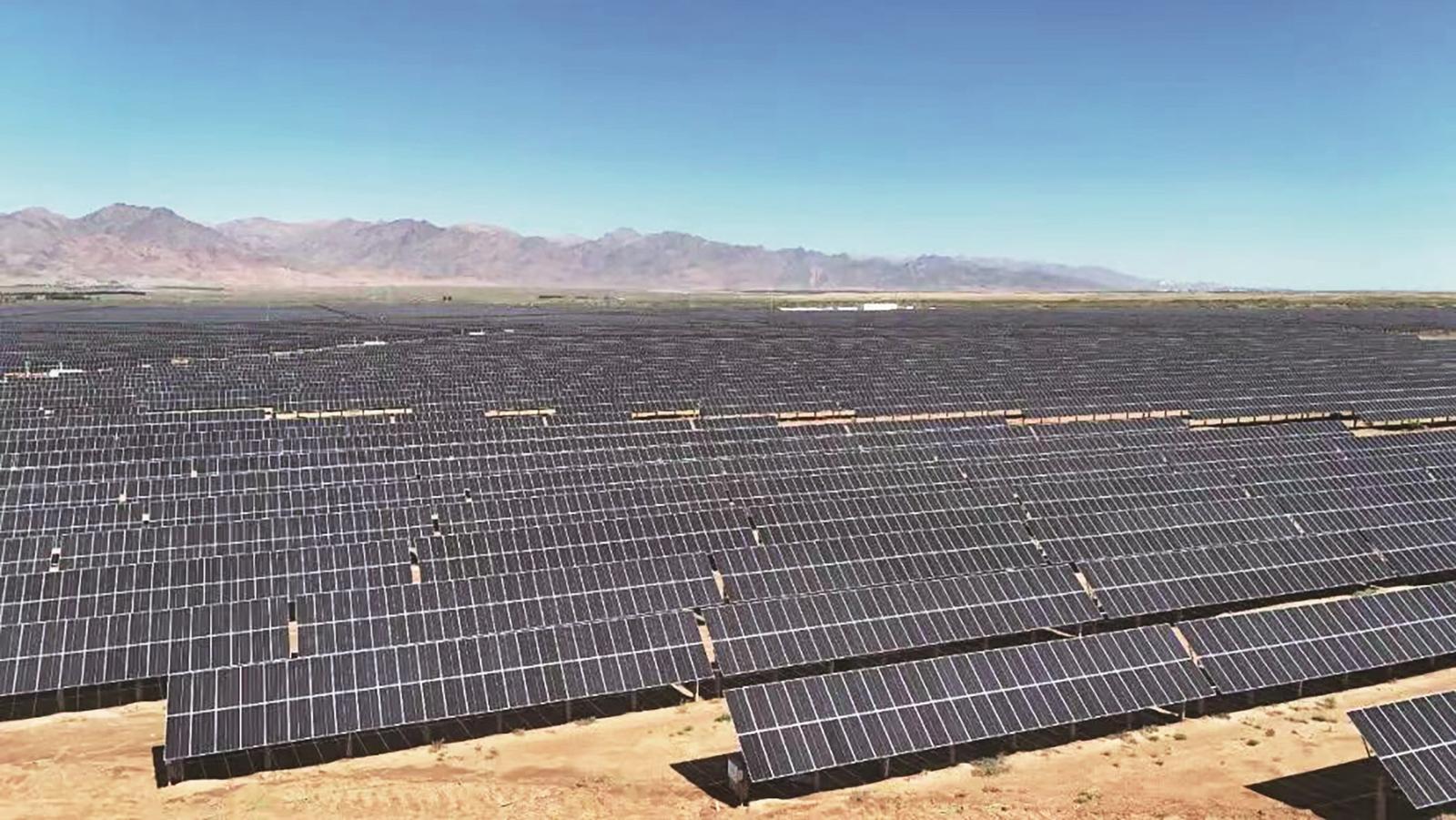 項目位于杭錦后旗太陽廟農(nóng)場與雙廟鎮(zhèn),總投資約11.89億元,占地8648畝,創(chuàng)新采用“板上發(fā)電、板下治沙、樁基固沙”一體化模式,真正實現(xiàn)了清潔能源生產(chǎn)與生態(tài)修復(fù)深度融合,走出了一條“光伏賦能治沙、綠電反哺生態(tài)”的可持續(xù)發(fā)展新路子。