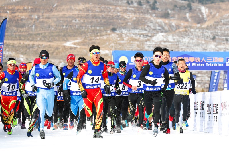 2月24日,參賽選手在冬季鐵人三項賽跑步比賽中。當(dāng)日,2019年全國冬季鐵人三項賽在烏蘭察布市涼城縣岱海國際越野滑雪場開賽,比賽包括跑步、山地自行車和越野滑雪三個比賽項目,設(shè)置男女子精英組和男女子公開組,吸引了來自北京、黑龍江、寧夏等地的120余名選手參賽。這是我區(qū)首次舉辦全國冬季鐵人三項賽,此舉將進一步豐富我區(qū)冬季體育運動項目,推動冰雪運動發(fā)展?!?nèi)蒙古日報社融媒體記者 于濤 攝