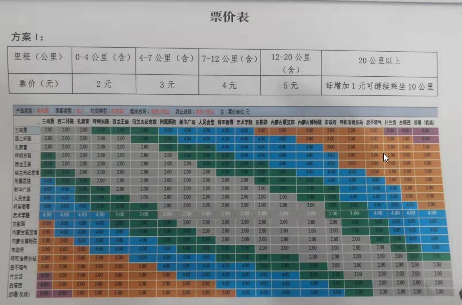 呼和浩特市軌道交通票制票價(jià)方案