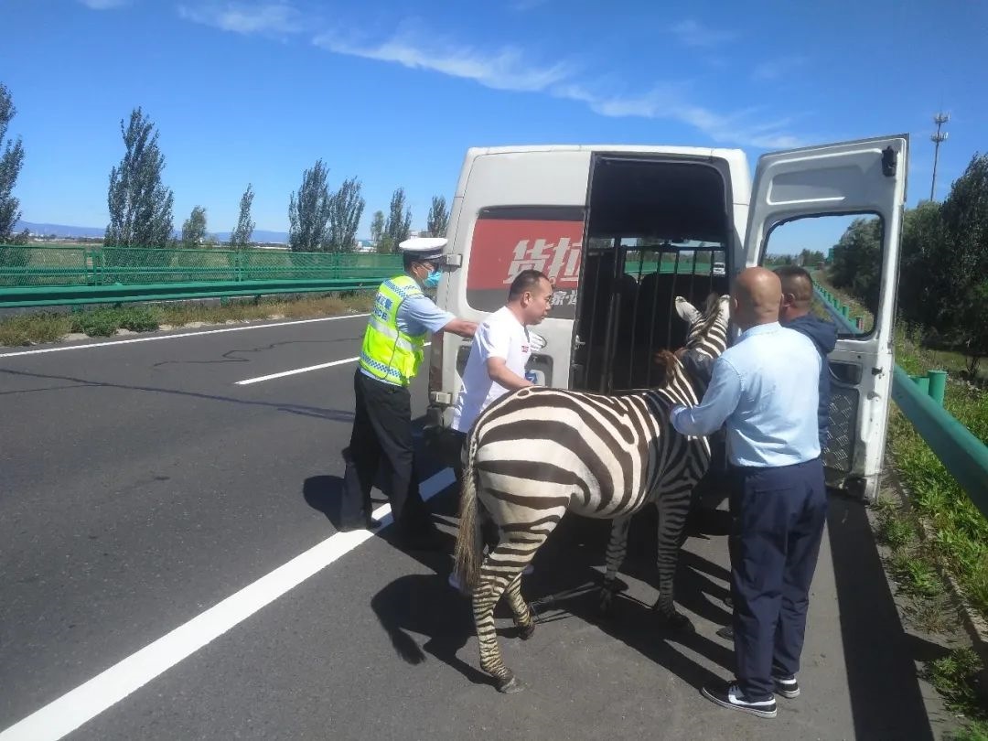 13時(shí)01分,巡邏民警到達(dá)繞城高速32KM南幅,發(fā)現(xiàn)有兩人已將斑馬控制,一輛貨車停在北幅應(yīng)急車道內(nèi)。在給人員、車輛、斑馬做好安全防護(hù)措施后,民警了解到,控制斑馬的二人為失主,上午二人將斑馬裝上貨車,從包頭市前往呼和浩特市,準(zhǔn)備將斑馬供大眾觀賞,沒想到在中途斑馬受到驚嚇,導(dǎo)致意外掙脫束縛,從貨車?yán)锱艹鰜?,在此過程中未有人員受傷,未造成財(cái)產(chǎn)損失。