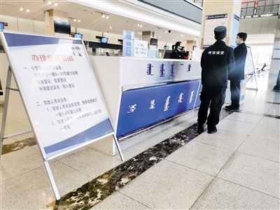 “你好!違章查詢和罰款繳納需要去交管隊,不在這里辦理。如果是本人車輛,也可下載12123 APP進行辦理?!?月18日9時10分,記者走進呼和浩特市交警支隊車輛管理所,在政務服務中心東大廳正對著大門的導辦臺,一位民警正在接受市民業(yè)務咨詢。記者看到,大廳里往日喧囂熱鬧的場景不見了,只有零星幾位市民在辦理業(yè)務。