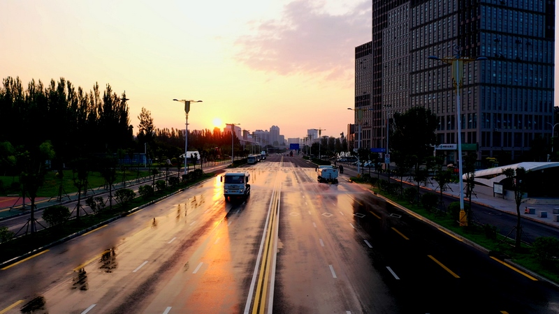 6:30,當一輪紅日升起的時候,作業(yè)結束,一個干凈整潔、空氣清新的城市呈現(xiàn)在市民面前。