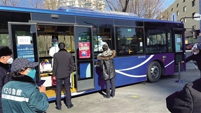 2月28日上午,在呼和浩特市新華大街附近,一輛敞開了玻璃窗的公交車停靠在道路旁,居民們按照規(guī)定間隔排隊,依次來到公交車前進行核酸采樣,醫(yī)務(wù)人員坐在車廂座椅有序地為市民進行核酸采樣,受檢人員不用上車,站在窗外,采完即走。