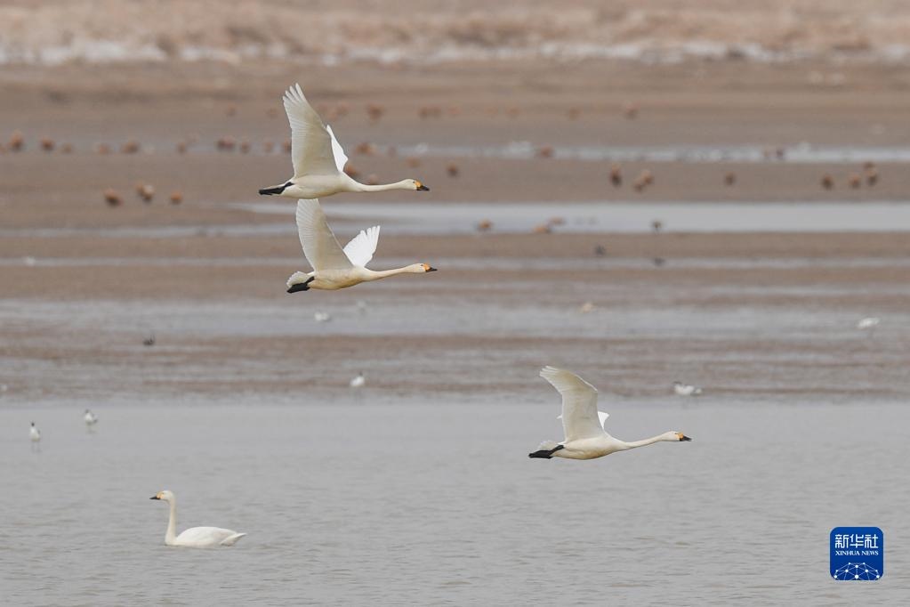 隨著氣溫回升,內(nèi)蒙古呼和浩特市土默特左旗海流水庫迎來了大批遷徙候鳥。它們?cè)谶@里休憩覓食,為海流水庫增添勃勃生機(jī)。