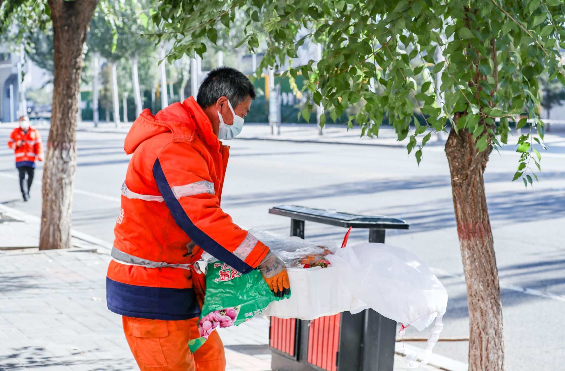 10月18日,呼和浩特市賽罕區(qū)環(huán)衛(wèi)工作人員正在進(jìn)行清掃清理工作。為切實(shí)做好疫情防控期間呼和浩特市生活垃圾清運(yùn)工作,讓城市清潔無(wú)死角,環(huán)衛(wèi)部門(mén)工作人員堅(jiān)守在城市街頭、社區(qū)等工作崗位,在做好自身防護(hù)的同時(shí),維護(hù)著城市的清潔環(huán)境。攝影/草原全媒·正北方網(wǎng)首席記者 牛天甲