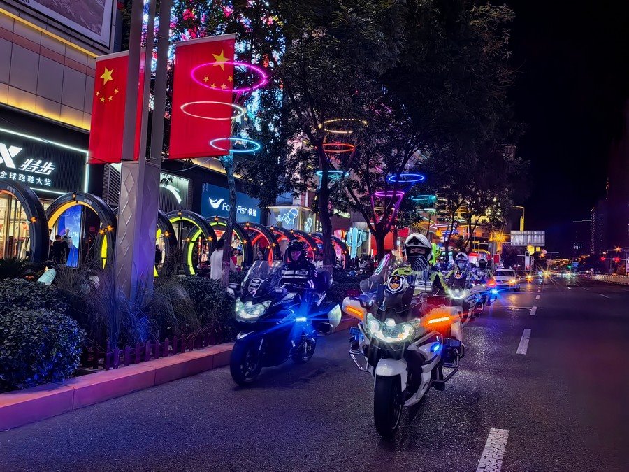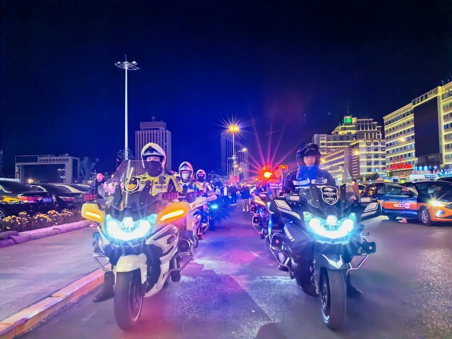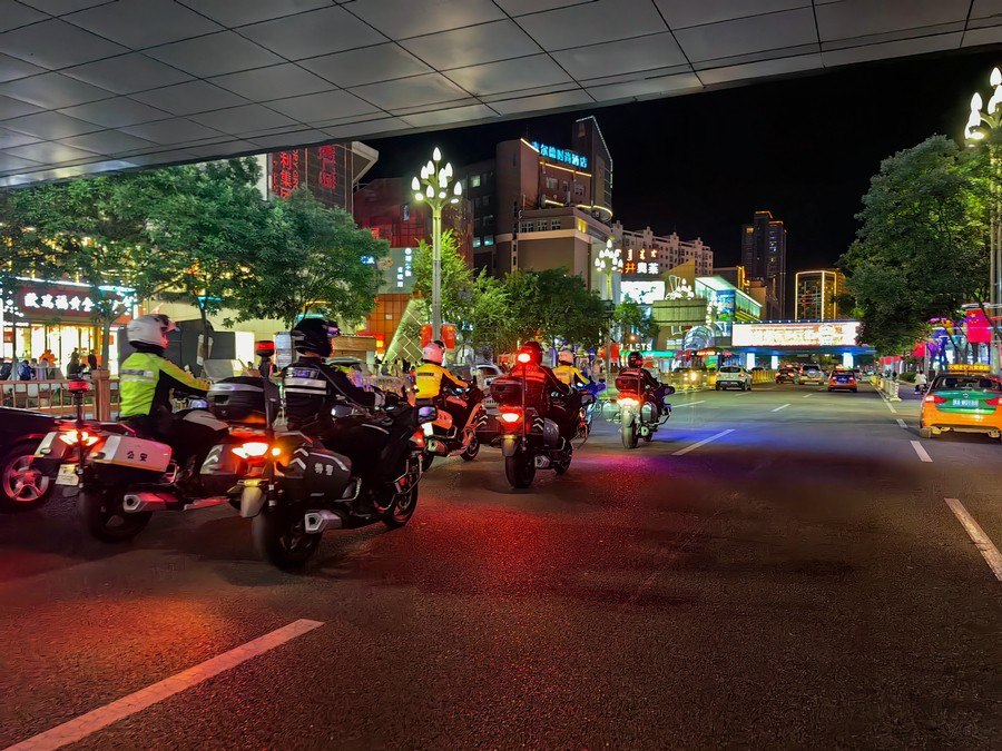 中秋、國慶兩節(jié)期間,呼和浩特市公安局反恐怖和特巡警支隊戰(zhàn)鷹突擊隊與交警支隊停放管理大隊鐵騎中隊,聯(lián)合開展巡邏防控工作,并組成了一支騎警處突機動隊,成了呼和浩特大街小巷一道亮麗的風景線。圖為中秋節(jié)之夜,這支機動隊開展聯(lián)合巡邏,守護青城百姓平安過節(jié)。 王鑫 攝影報道