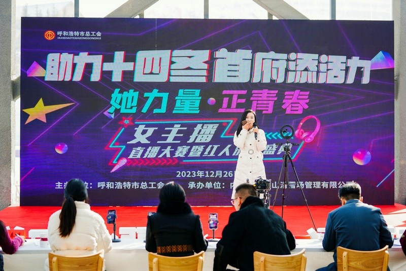 在“十四冬”即將來臨之際,呼和浩特市總工會以“她力量,正青春”為主題,聯(lián)合馬鬃山滑雪場,舉辦了此次女主播直播大賽活動。