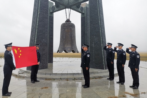 9月18日上午,內(nèi)蒙古諾門罕布日德邊境派出所在諾門罕戰(zhàn)役紀(jì)念廣場和平大鐘前開展“重溫人民警察誓詞”主題活動(dòng),紀(jì)念“九一八”事件89周年。