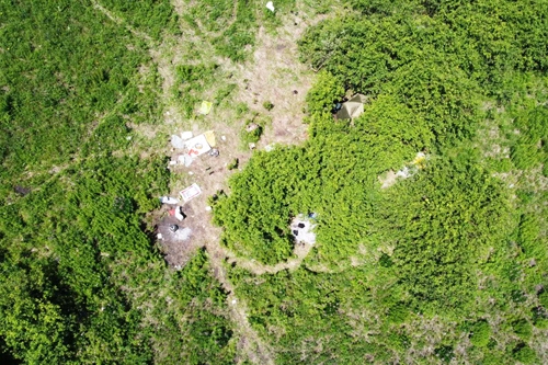 無(wú)人機(jī)傳回的非法采挖野生藥材窩點(diǎn)現(xiàn)場(chǎng)畫面。