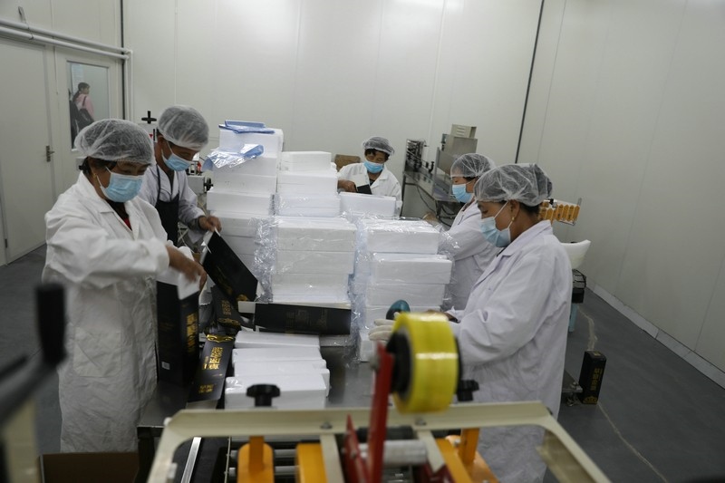 當(dāng)日上午,媒體團(tuán)成員進(jìn)入加工車間實(shí)地了解熏雞、熏蛋、熏肉等特色產(chǎn)品生產(chǎn)加工過程。據(jù)了解,卓資縣的熏雞每年銷量約為400萬只,產(chǎn)值2個(gè)億,帶動(dòng)了當(dāng)?shù)厝罕娒撠氈赂唬钦嬲母幻駨?qiáng)縣產(chǎn)業(yè)。目前,卓資熏雞在繼承傳統(tǒng)工藝的基礎(chǔ)上,引進(jìn)鎖鮮包裝,使熏雞保鮮期由原來的7天增加到15天,并進(jìn)入電商平臺(tái)面向全國銷售。