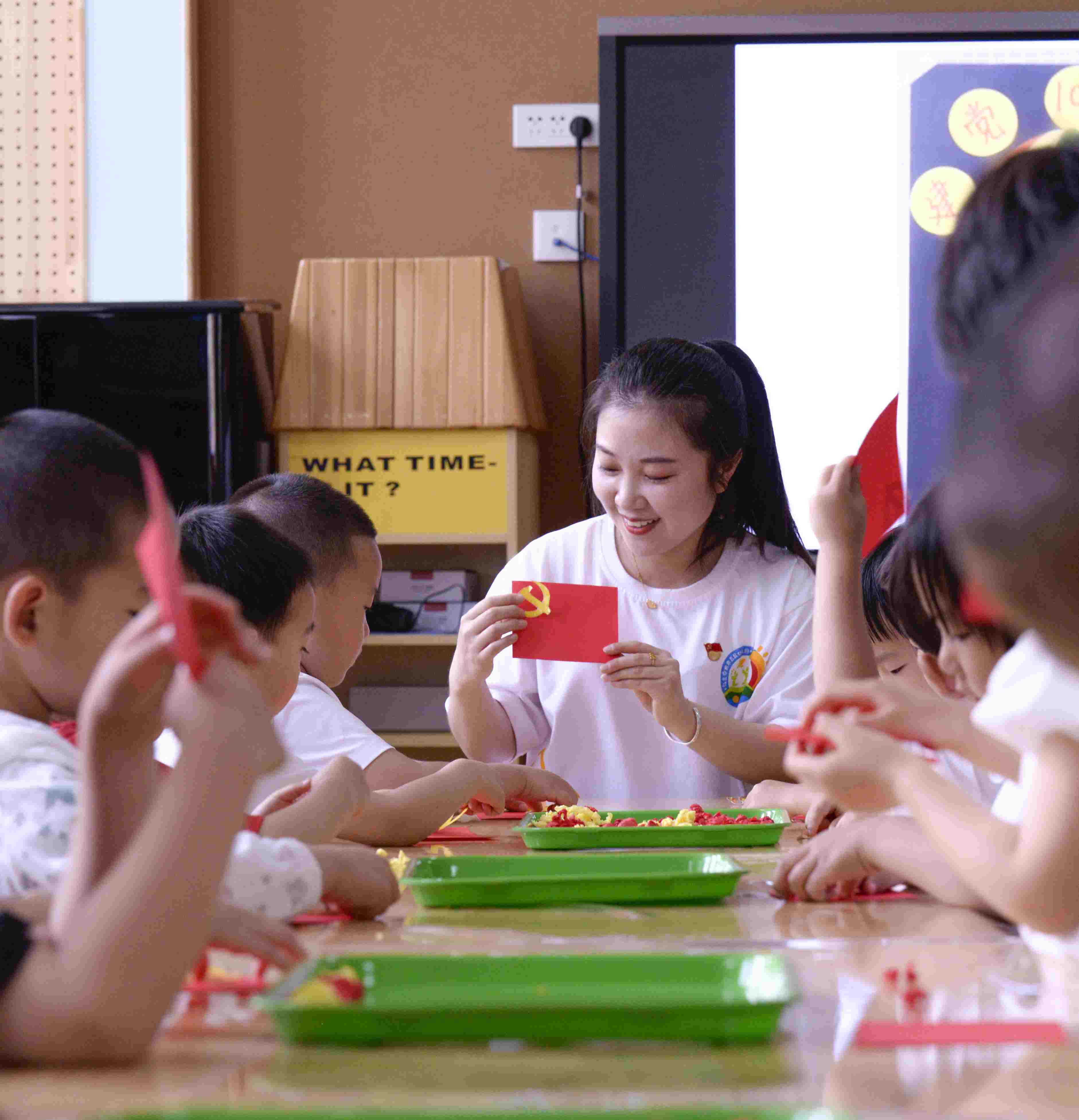 為喜迎黨的二十大勝利召開,近日,烏蘭察布市直屬幼兒園組織開展了紅色教育主題活動,厚植兒童愛黨愛國愛家的情懷?;顒又校蠋焸冇檬止?、舞蹈、互動問答等方式,引領孩子們認識黨旗及黨旗的意義,了解關于建黨節(jié)的由來及其相關知識。競答環(huán)節(jié)上,小朋友們熱烈互動,踴躍發(fā)言,現(xiàn)場氣氛熱烈。此次活動讓孩子們進一步感受紅色精神,傳承紅色基因,激發(fā)了孩子們感恩共產(chǎn)黨、熱愛祖國的情懷。(唐璇博)