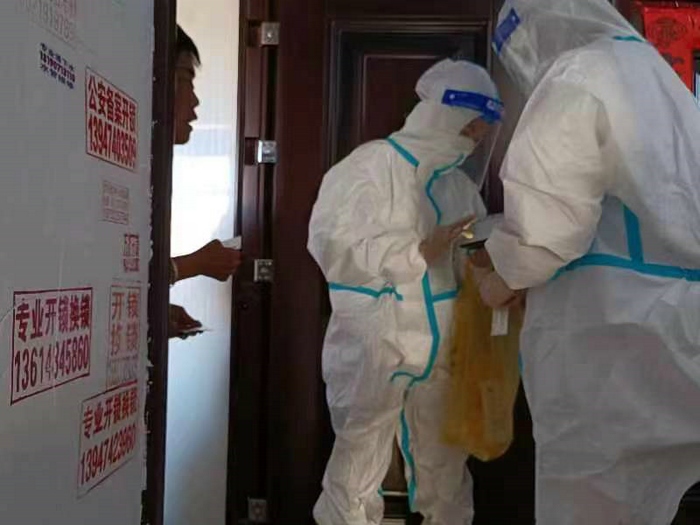 派駐在社區(qū)的信息登記員、消殺員、值守人員與社區(qū)工作人員密切協(xié)作,開展全員核酸檢測工作,協(xié)助做好包聯(lián)小區(qū)現(xiàn)場秩序維持、查驗(yàn)健康碼、提醒群眾排隊(duì)保持距離、消殺、防疫知識普及、居民心理疏導(dǎo)等工作,切實(shí)為居民排憂紓困,保障居民生命健康。