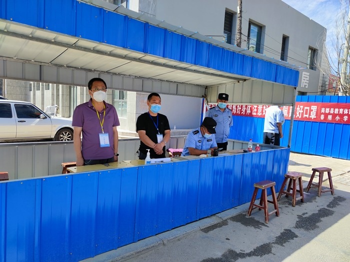 在學(xué)校站在三尺講臺,拿起書本,面向孩子,他們是一名光榮的人民教師。走上抗疫一線,穿上白底藍(lán)邊的防護(hù)服,拿起測溫儀,他們是一名光榮的抗疫防疫工作者。以師者擔(dān)當(dāng),同心戰(zhàn)“疫”,眾志成城,商都必勝!