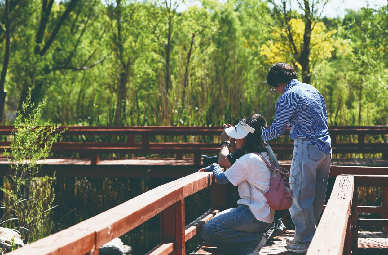 “霸王河生態(tài)公園景色好,不僅能看到滿眼的綠色,還能賞睡蓮、觀鳥類。家離得近,我們經(jīng)常來?!笔忻駝Ⅸi說道。