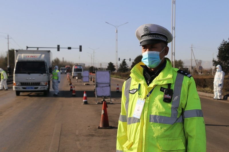 標準的停車手勢,文明的禮貌用語,敬禮,請您出示核酸證明,行程碼……在110國道烏海市烏達區(qū)三道坎疫情防控檢查點,一位兩鬢微白的民警在一眾年輕人中格外顯眼,正在核查進入烏達區(qū)方向車輛司乘人員的健康碼、行程碼及48小時內(nèi)核酸檢測證明,從早上7點50分上崗便冒著寒風排查車輛,到下午4點一站就是8個小時,最多的時候,車流量達到2600多輛,勸返車輛30多輛40余人,勸他休息,他卻說:“現(xiàn)在是非常時期,打好疫情攻堅戰(zhàn),需要我們眾志成城,一起努力!”