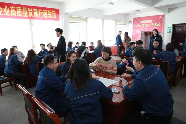 此次活動分為棋牌比賽、燈籠DIY、吃元宵等幾個環(huán)節(jié)。打撲克牌活動現(xiàn)場,選手們迅速進入狀態(tài)。大家配合默契,沉著應戰(zhàn),見招拆招,參與選手情緒高昂,積極踴躍,旁邊加油助威的人員各個興致昂揚。鼓聲、笑聲、吶喊聲,此起彼伏,更是把文化活動的氣氛推向高潮。