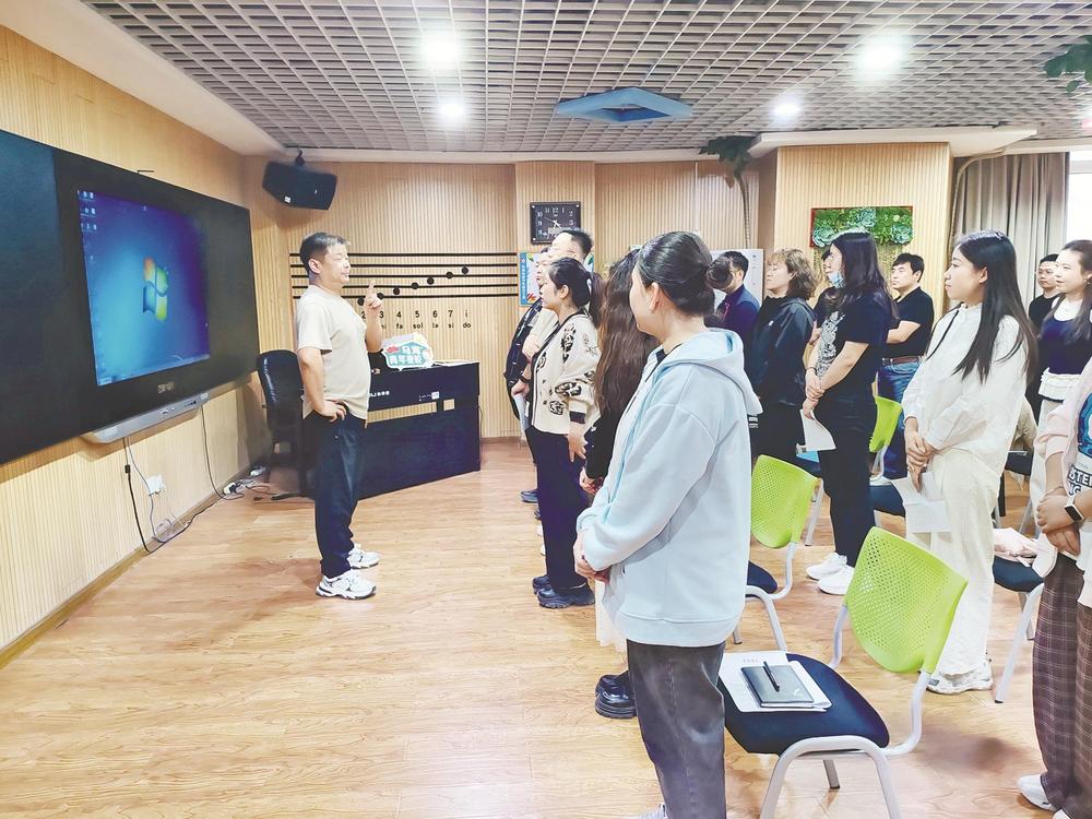 “注意,唱歌張嘴的時候也是有技巧的,跟說話不太一樣,大家跟著我一起練習(xí)?!?月17日,在烏海科學(xué)技術(shù)館的一間聲樂教室里,一群青年人跟著老師學(xué)習(xí)唱歌技巧,這是今年“青年夜?!钡恼n程之一——“青年合唱團”課程。