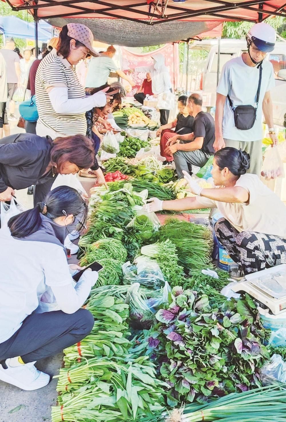 夏日的早市里,菜攤攤主牛麗梅就已經(jīng)擺放好新鮮的蔬菜,泡沫箱里的黃瓜頂著嫩黃的花,筐里的西紅柿還帶著露珠,“這些菜都是半夜起來從地里現(xiàn)摘的,你看看這黃瓜頂花帶刺的,多新鮮。我已經(jīng)在這個早市擺了十來年攤了,人們還是很認(rèn)可我家的蔬菜,就是累點也覺得挺高興的?!彼裏崆榈卣泻糁皝碣I菜的市民,過秤、算賬,干脆利落,一看就有著豐富的賣菜經(jīng)驗。