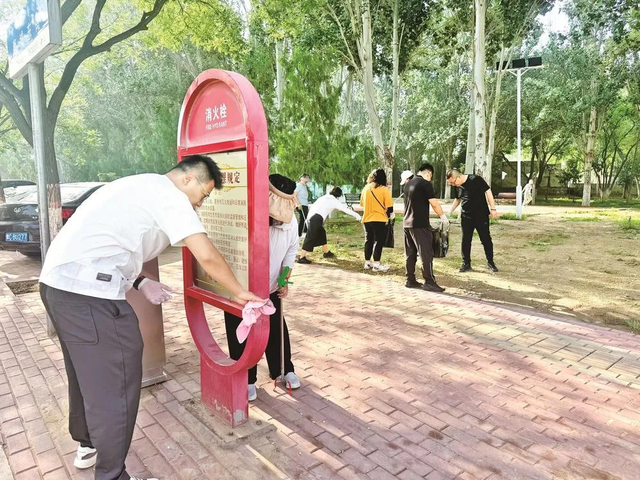 隊員們中有不少是和田永成年紀(jì)相仿的退休老人,還有一些新加入進(jìn)來的年輕志愿者。他們有的拿著掃帚清掃路面,有的提著袋子撿拾垃圾,有的則在擦拭小區(qū)的健身器材。魏玉仙是志愿服務(wù)隊的老隊員了,她一邊擦著石凳一邊說:“小區(qū)是咱們自己的家,干凈了住著才舒服。老田頭一招呼,我們肯定得來?!?/p>