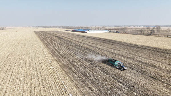 3月8日,農(nóng)民駕駛農(nóng)機(jī)在內(nèi)蒙古興安盟扎賚特旗音德爾鎮(zhèn)巨寶村一處農(nóng)田中拋撒有機(jī)肥(無人機(jī)照片)。驚蟄節(jié)氣后,內(nèi)蒙古興安盟扎賚特旗各項(xiàng)備耕工作有序推進(jìn)。扎賚特旗是我國(guó)重要的產(chǎn)糧大縣,2024年糧食總產(chǎn)量達(dá)49.5億斤。(新華社記者 貝赫)