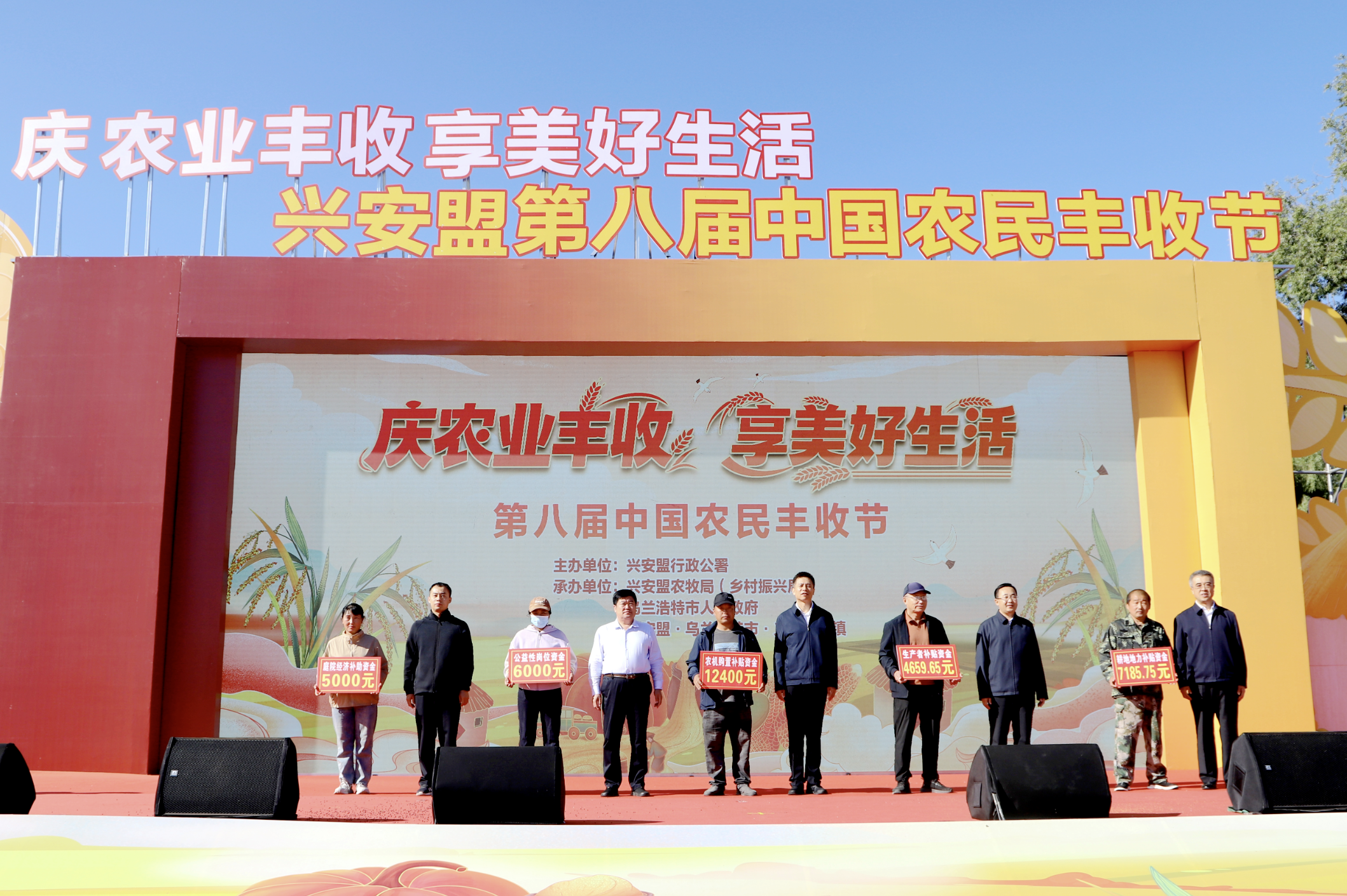 臺下駐村干部牽頭“帶貨”,臺上惠農(nóng)補貼發(fā)放環(huán)節(jié)更讓農(nóng)牧民朋友感受到“豐收”的真情實感。從庭院經(jīng)濟補助資金、耕地地力補貼資金、農(nóng)機購置補貼資金到公益性崗位資金、生產(chǎn)者補貼資金,5位農(nóng)牧民代表現(xiàn)場領(lǐng)取補貼牌,金額從5000元至一萬余元不等,成為興安盟落實強農(nóng)惠農(nóng)政策的直接見證。
