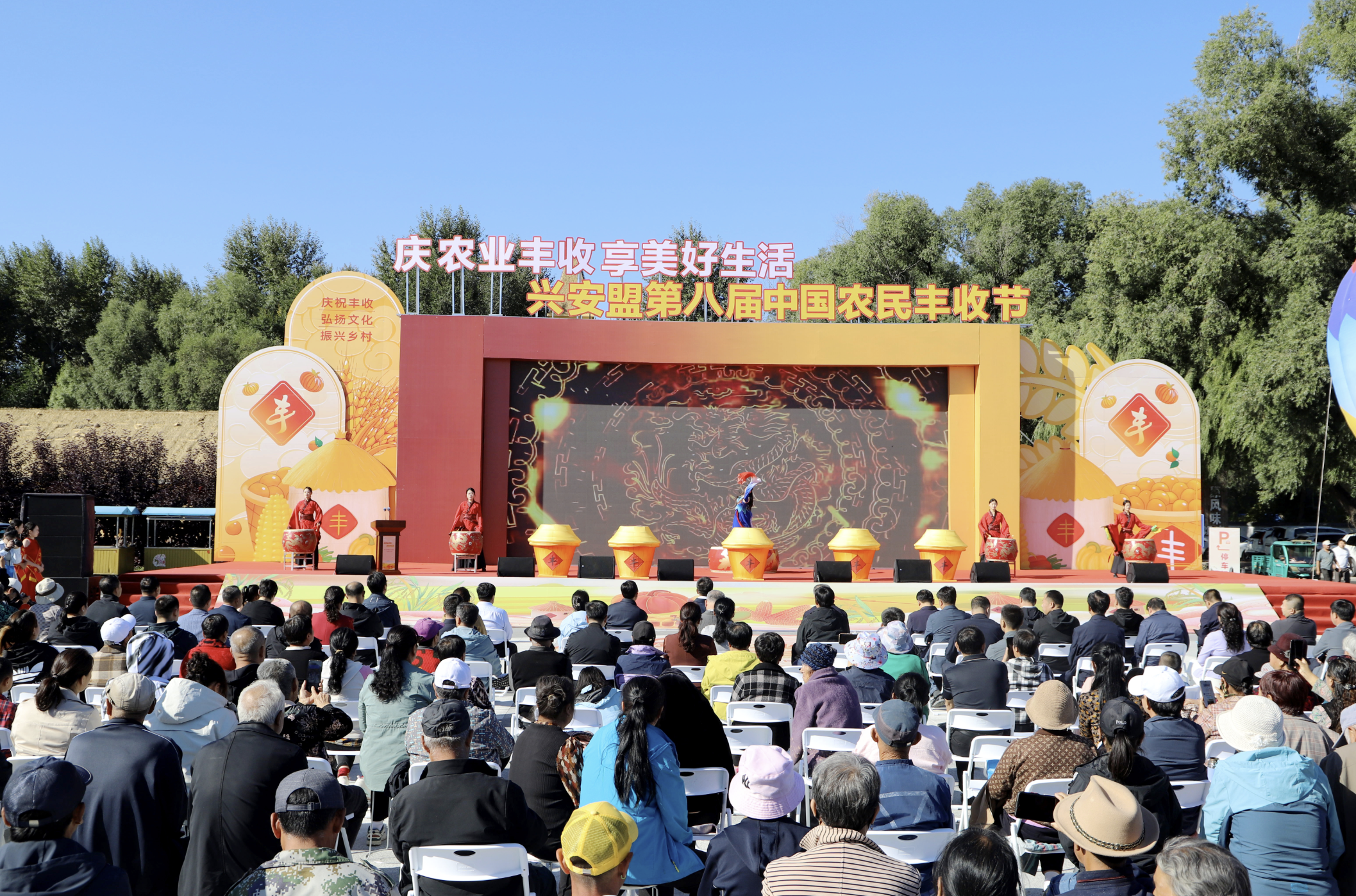 稻浪飄金歌歲稔,果林綴玉頌?zāi)曦S。金秋九月,興安大地稻浪翻滾、瓜果飄香,處處洋溢著豐收的喜悅。9月21日,第八屆“中國農(nóng)民豐收節(jié)”興安盟主會場活動在烏蘭浩特市義勒力特鎮(zhèn)義勒力特嘎查群眾文化生活廣場舉行。農(nóng)牧民朋友歡聚在一起,共慶豐收、共享喜悅、共迎盛會。