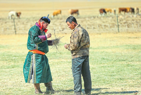 3月28日,在草場上,一名嘎查黨員與牧民交流。近年來,內蒙古西烏珠穆沁旗浩勒圖高勒鎮(zhèn)巴彥額日和圖嘎查堅持黨建引領,在發(fā)展牧區(qū)旅游、綠色畜牧業(yè)提高嘎查集體經濟收入的同時,基層黨組織還通過直播、短視頻等方式,吸引外地游客及客商,帶動牧民增收致富。新華社記者王楷焱攝