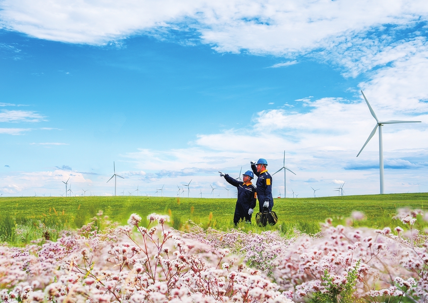 近日,國華投資蒙東分公司輝騰梁風電場內(nèi),風機群與遍野花海相映成趣,兩名風電運維工程師,正在交流剛處理完的偏航故障細節(jié),核對風速儀、風向標校準數(shù)據(jù),討論后續(xù)防沙維護措施,同時檢查設(shè)備運行狀態(tài),確保風機穩(wěn)定發(fā)電。