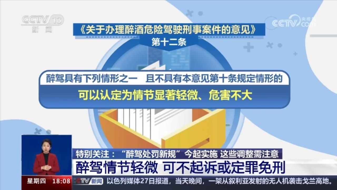 “醉駕處罰新規(guī)”開始實(shí)施:15種情形從重處理 10種情形一般不適用緩刑 12月28日開始,《關(guān)于辦理醉酒危險(xiǎn)駕駛刑事案件的意見......