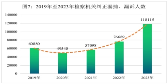 全國檢察機(jī)關(guān)共糾正公安機(jī)關(guān)遺漏提請逮捕的犯罪嫌疑人19485人,同比上升12.8%;糾正遺漏起訴同案犯98630人,同比上升66%,追捕、追訴力度不斷加大。糾正漏捕判處三年有期徒刑以上刑罰8781人,糾正漏訴判處有期徒刑以上刑罰78137人,共計86918人,糾正漏捕、漏訴判處有期徒刑以上刑罰率96.5%,同比增加11.1個百分點(diǎn),質(zhì)量總體較高。