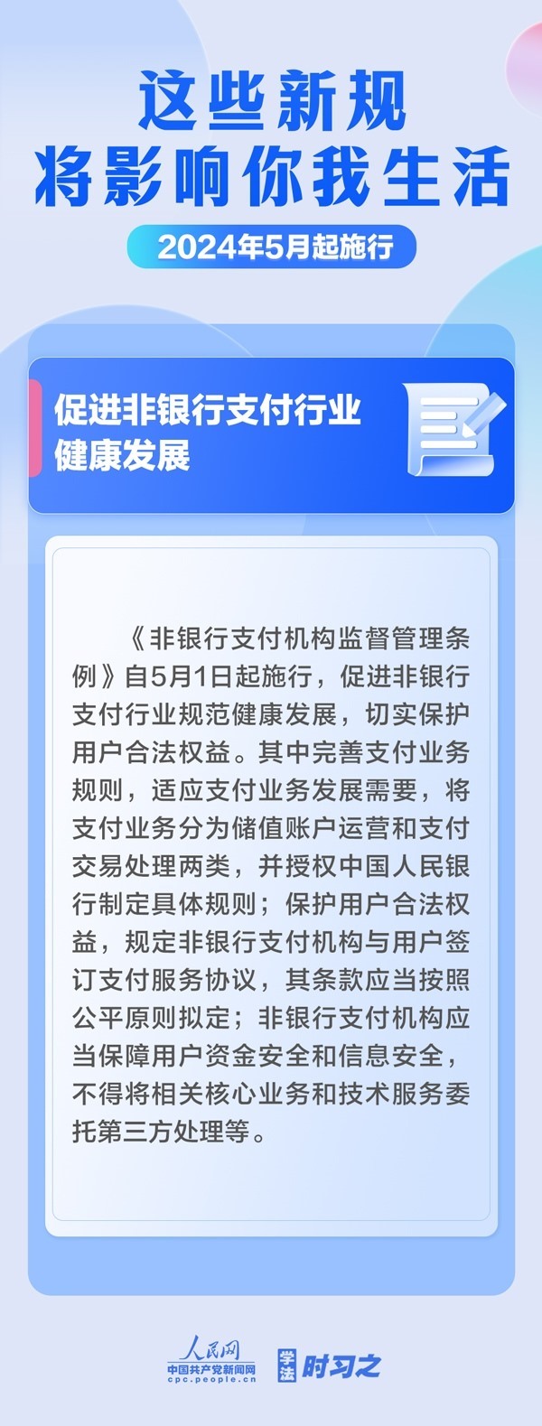 促進(jìn)非銀行支付行業(yè)健康發(fā)展;首次對社會組織名稱進(jìn)行統(tǒng)一規(guī)定;破除資格預(yù)審等招投標(biāo)領(lǐng)域交易壁壘……5月起,這些新規(guī)施行,將影響你我生活。