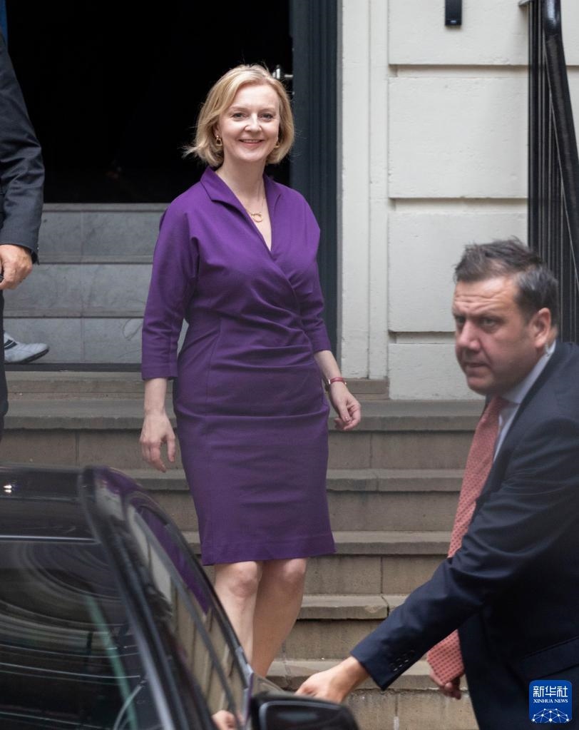 9月5日,在英國倫敦,當(dāng)選英國保守黨新黨首的伊麗莎白·特拉斯(左)離開保守黨總部。新華社發(fā)