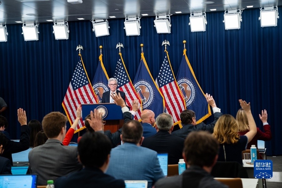 11月2日,美國聯(lián)邦儲(chǔ)備委員會(huì)主席鮑威爾在華盛頓出席新聞發(fā)布會(huì)。新華社記者劉杰攝