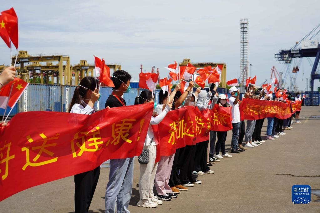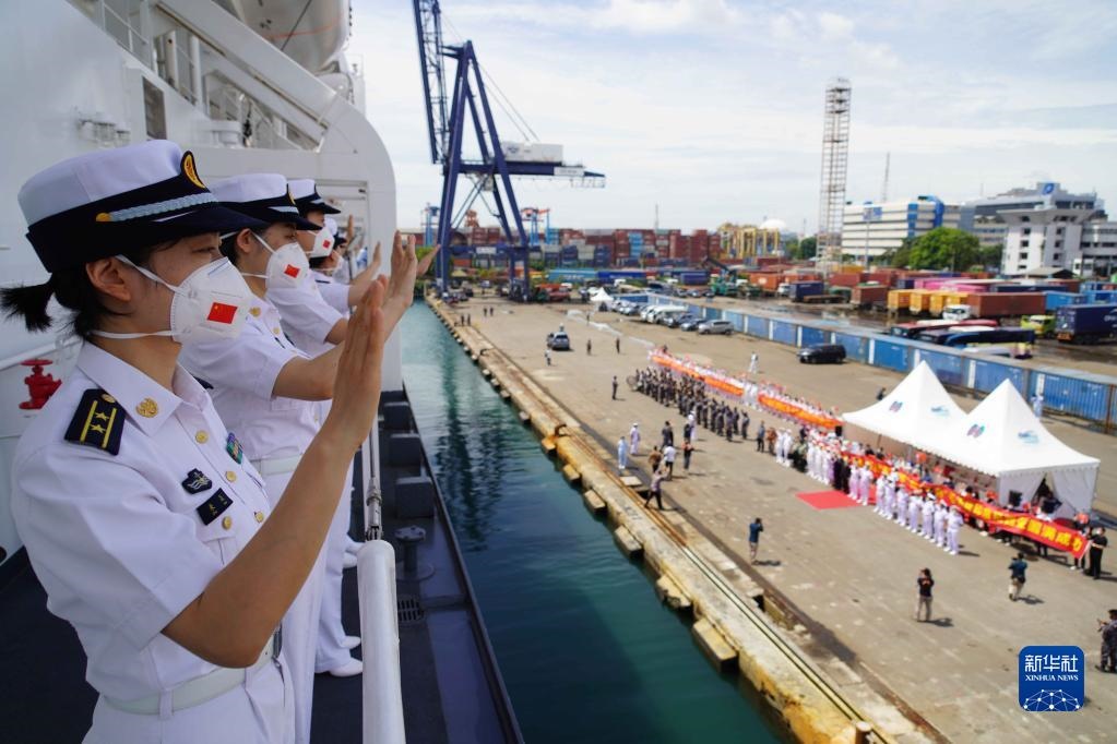 當(dāng)日,印尼海軍和當(dāng)?shù)孛癖?,以及中國駐印尼使館工作人員和中資機構(gòu)、華僑華人代表等在碼頭送行。離開碼頭后,“和平方舟”號醫(yī)院船還與印尼海軍“三寶壟”號醫(yī)院船進行了聯(lián)合通信、燈光旗語、編隊航行等課目演練。