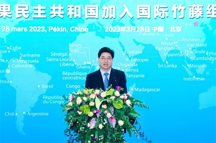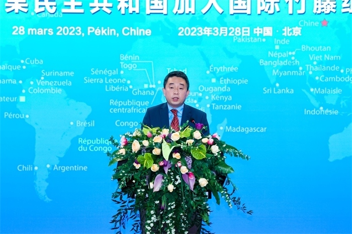 國(guó)際竹藤組織理事會(huì)主席、喀麥隆林業(yè)和野生動(dòng)物部部長(zhǎng)恩東戈·朱爾·多雷,國(guó)際竹藤組織董事會(huì)聯(lián)合主席江澤慧,中國(guó)外交部國(guó)際經(jīng)濟(jì)司參贊張雷,中國(guó)國(guó)家林業(yè)和草原局副局長(zhǎng)譚光明,乍得共和國(guó)駐華使館代辦馬魯米,剛果民主共和國(guó)農(nóng)業(yè)部部長(zhǎng)姆津加·比利漢澤·德西雷出席并致辭。