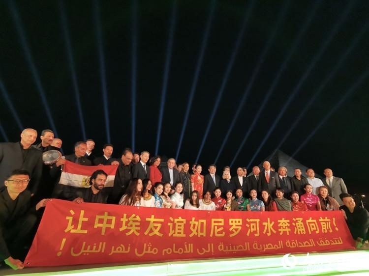 中埃兩國同為世界文明古國,人文領(lǐng)域合作空間大、潛力足。夜幕下的吉薩三大金字塔在燈光映襯下巍峨聳立,現(xiàn)場橫幅展示出“讓中埃友誼如尼羅河水奔涌向前”字樣,兩大古老文明此刻在金字塔上空相遇。音樂會的成功舉辦將成為中埃兩國文化合作新起點。