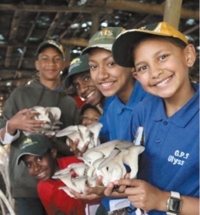 在巴布亞新幾內(nèi)亞東高地省,澳大利亞國(guó)際學(xué)校學(xué)生到菌草示范基地參觀學(xué)習(xí)。中國(guó)國(guó)家菌草工程技術(shù)研究中心供圖