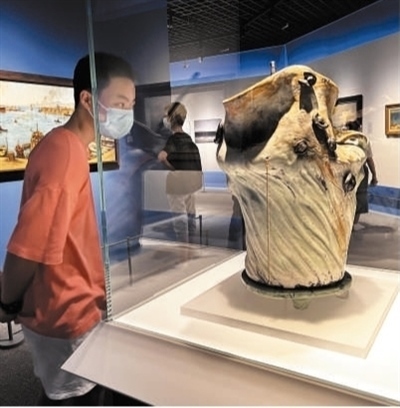 觀眾在上海博物館觀賞“塔拉薩:海洋文明與希臘藝術(shù)”展。周東潮攝(影像中國(guó))