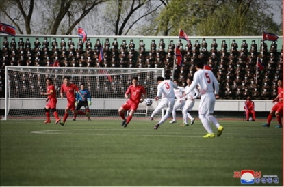 報(bào)道稱(chēng),首先進(jìn)行了朝鮮內(nèi)閣和國(guó)防省職員的足球比賽,兩隊(duì)攻防激烈,最終以1:1戰(zhàn)平,隨后進(jìn)入了點(diǎn)球大戰(zhàn),國(guó)防省隊(duì)以5:3力克內(nèi)閣隊(duì)。