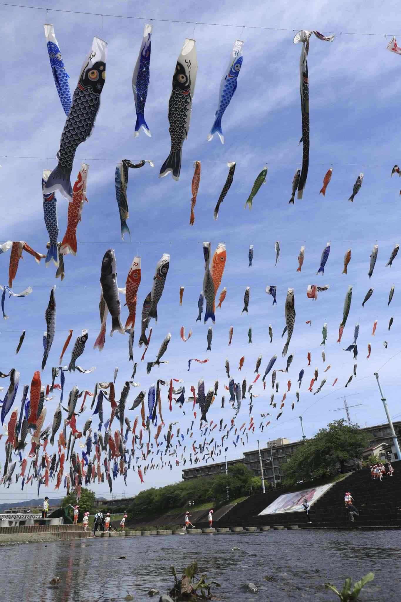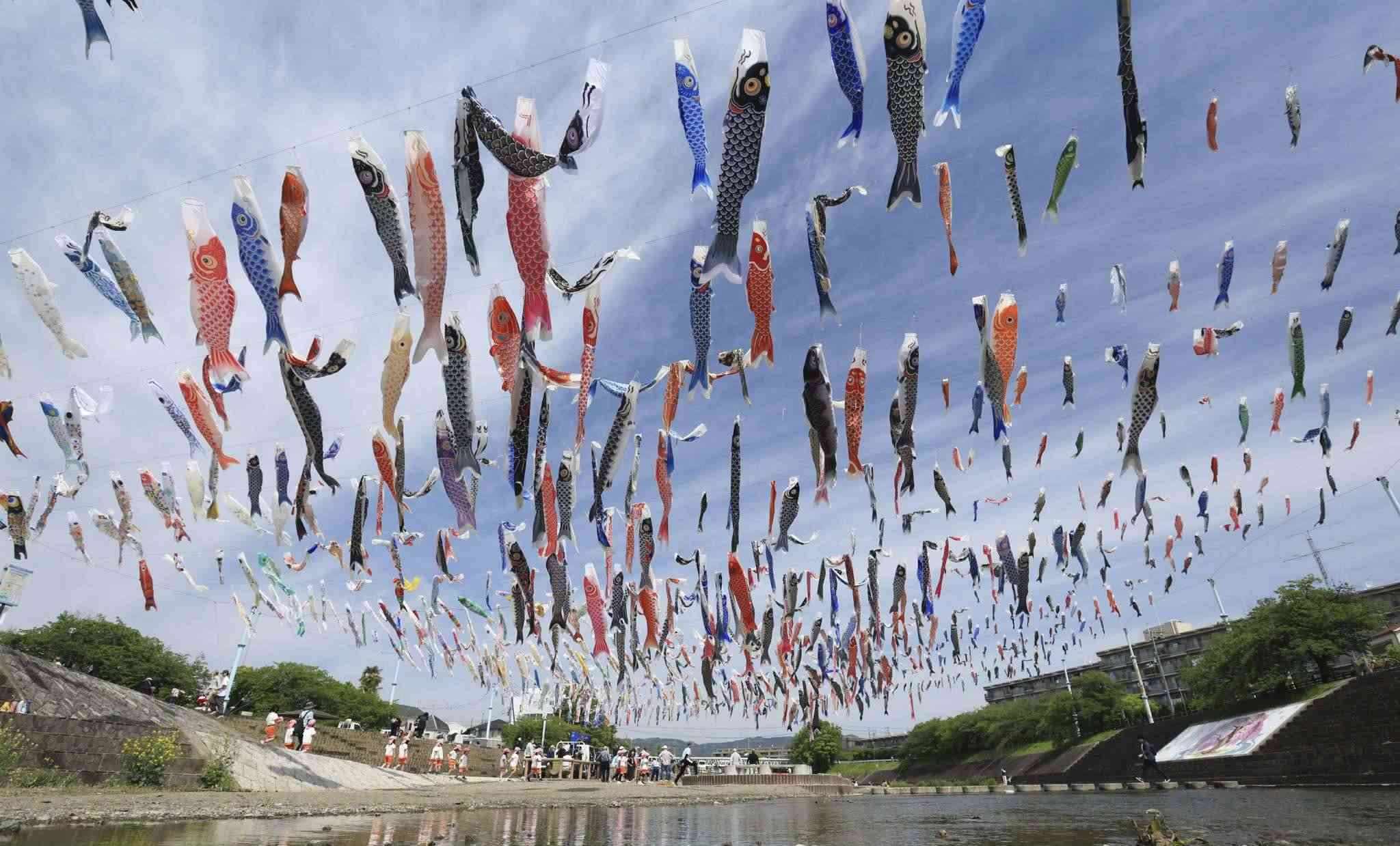 當(dāng)?shù)貢r(shí)間2023年4月28日,日本大阪,大約1000條鯉魚(yú)旗在高摫市的秋田川河上空飄揚(yáng),慶祝5月5日兒童節(jié)。視覺(jué)中國(guó)