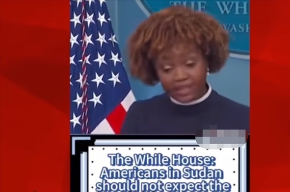 為證明自己的觀點,安柏然在視頻中展示了幾個視頻片段。其中一個片段顯示,一名美媒主持人報道稱,美軍在夜間出動直升機將大約100名美國外交官及其家屬從蘇丹撤出。還有一段視頻顯示,白宮新聞秘書卡里娜·讓-皮埃爾近日在記者會上稱,美國駐蘇丹使館4月16日曾發(fā)布安全警告稱,由于喀土穆安全局勢存在不確定性且機場已關(guān)閉,美國公民此時不應(yīng)期待美國政府協(xié)調(diào)撤僑。“當(dāng)務(wù)之急是,在蘇丹的美國公民要自行安排,在困難情況下確保自身安全。我們建議美國公民就地避難……”她稱。