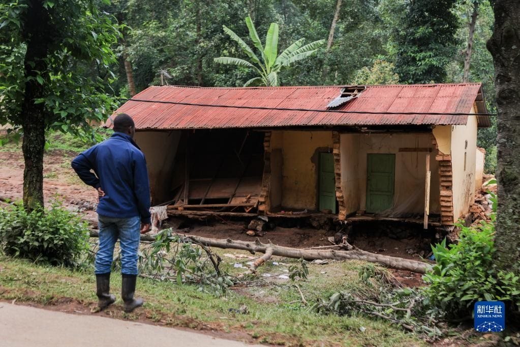 5月4日,居民站在盧旺達(dá)西方省一處受損的房屋旁。