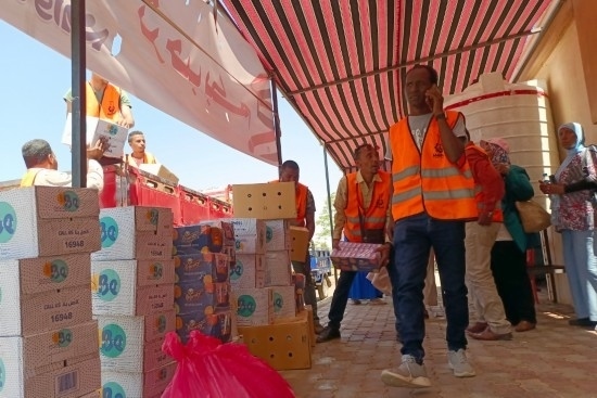 5月2日,在埃及南部阿斯旺省,工作人員為逃離蘇丹進入埃及的難民準備物資(手機拍攝)。新華社發(fā)(拉德萬攝)
